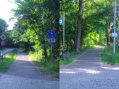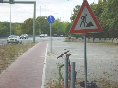 So nu jeht's mit die Radweje los: Achtung - hier Wurmloch in Paralleluniversum... |